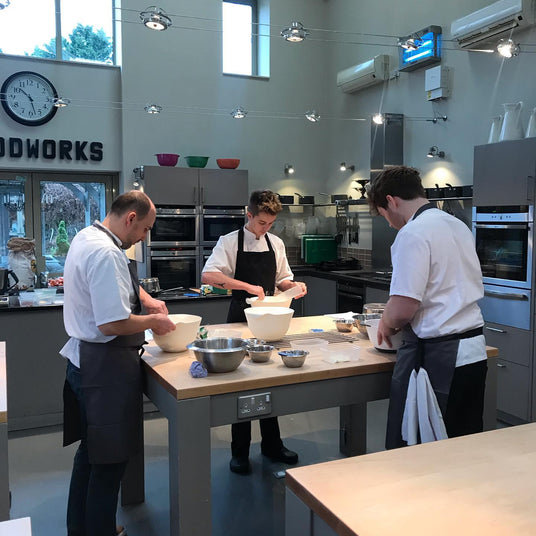 Foodworks Cookery School is pleased to collaborate with chefs for their classes, demonstrations, and events. Our venue is available for various purposes, offering a fully equipped professional kitchen and entire building for hire.